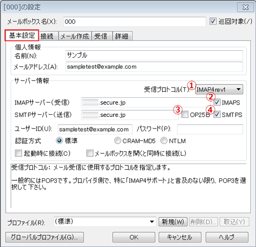 | ②IMAP4 | 993をご入力ください