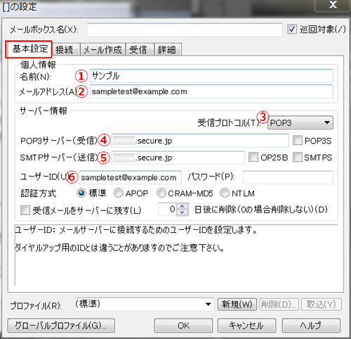 | ④POPサーバー(受信) | ご契約のメールサーバー名をご入力ください |