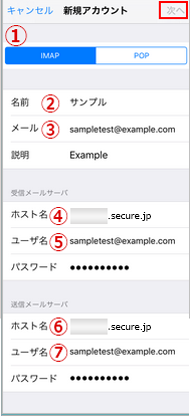 | ①IMAPとPOP | どちらかを選択してください。 |