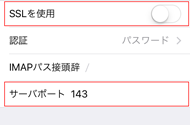 4 「SSLを使用」をオフにしてサーバーポートを変更します