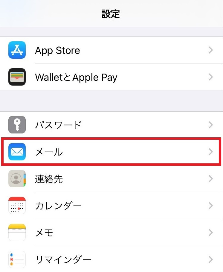 2 【設定】画面が表示されたら、【メール】をタップします。