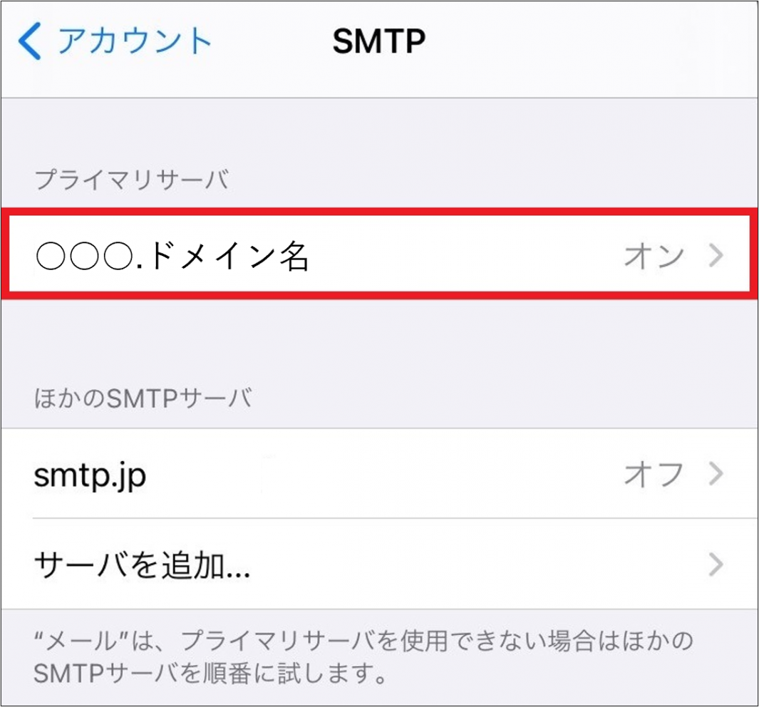 【SMTP】画面が表示されたら、【プライマリサーバー】を確認します。