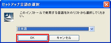 2 言語の選択が出るので「日本語」を選択(デフォルトが日本語設定)し、【OK】ボタンをクリックします。