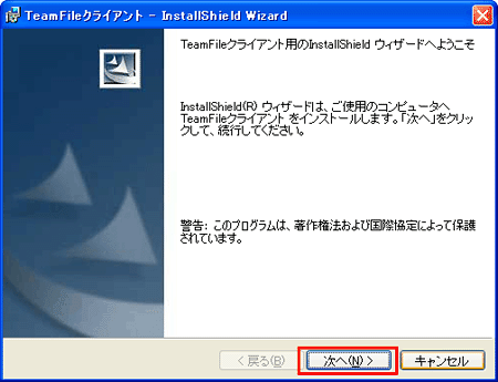 3 インストールウイザードが表示されますので、【次へ】ボタンをクリックします。