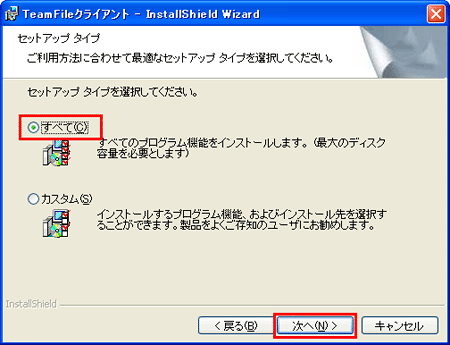 6 セットアップタイプは「すべて」を選択し、【次へ】ボタンをクリックします。