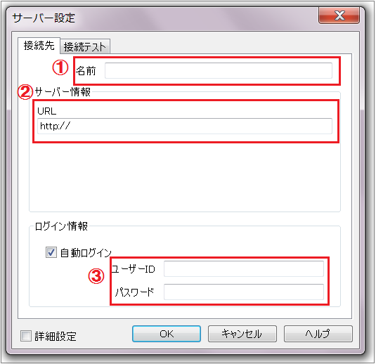 | ②URL | WebDAVへの接続URLを入力します。 接続URL: