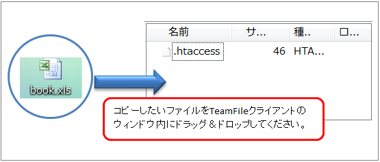 2 コピーしたいファイル・ディレクトリはWebDAV領域にドラッグ&ドロップするだけでコピーが完了です。