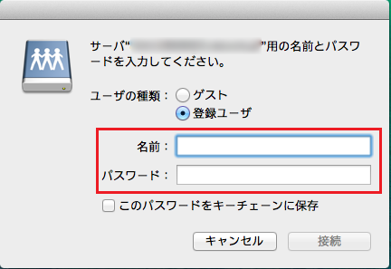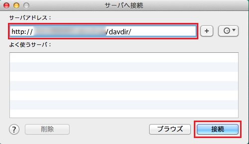 名前とパスワードはコントロールパネルより発行したWebDAVアカウントになります。