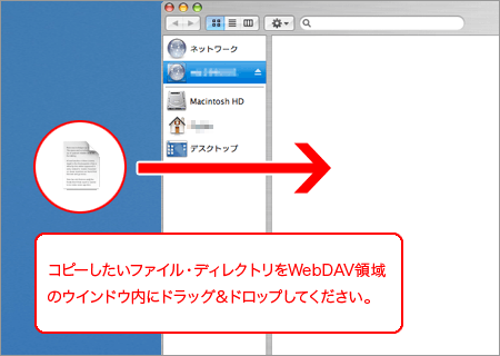 5 コピーしたいファイル・ディレクトリはWebDAV領域にドラッグ&ドロップするだけでコピーが完了です。