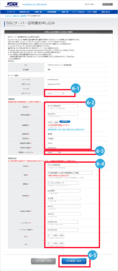 - 6-5 全ての情報をご確認(ご登録)いただきましたら「次の画面へ進む」ボタンをクリック