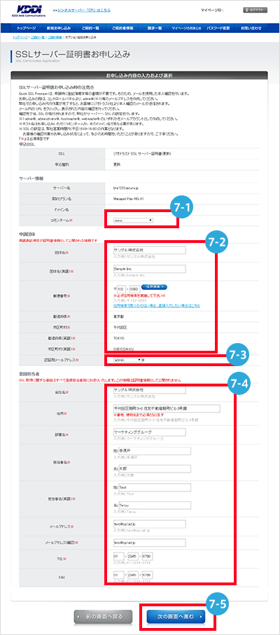 - 7-5 全ての情報をご確認(ご登録)いただきましたら「次の画面へ進む」ボタンをクリック