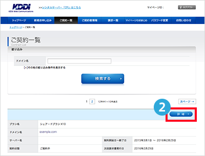 - SSLサーバー証明書を更新したいドメインの、サーバー契約「詳細」をクリック