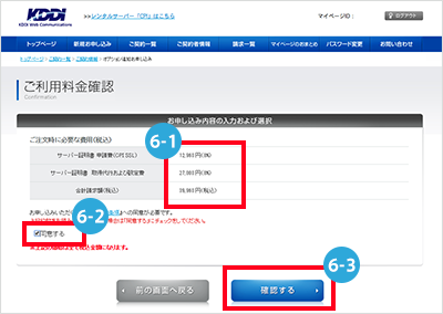 - 6-3 「確認する」ボタンをクリック