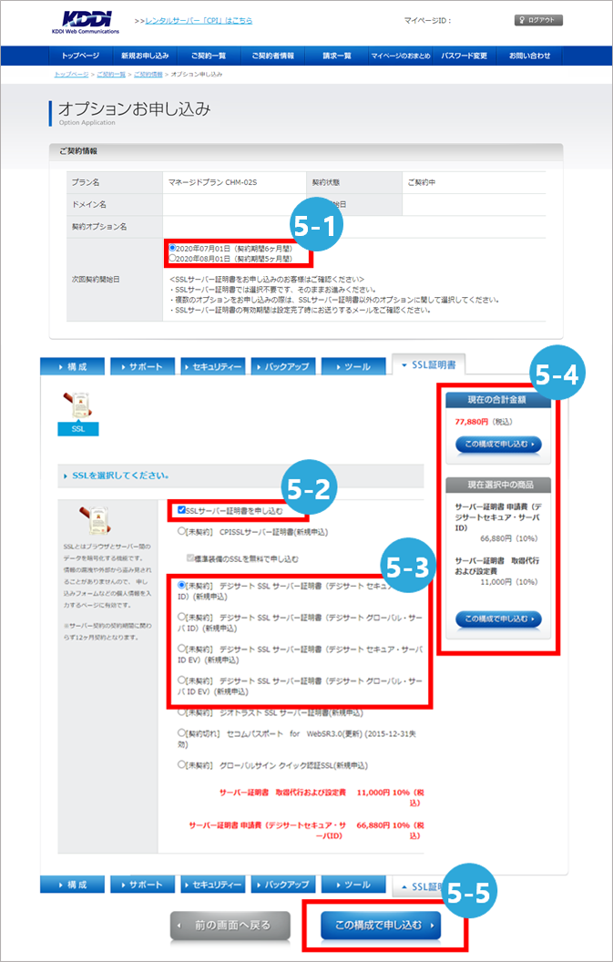 - 5-2 SSLサーバー証明書を申し込むのチェックボックスにチェックを入れる