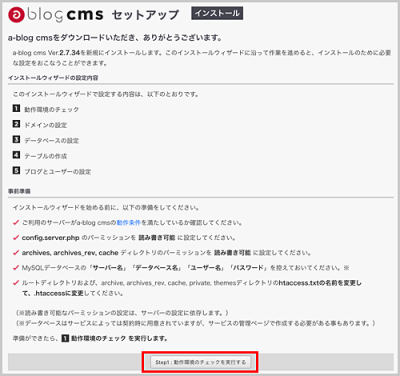 当ツールにてインストールされる a-blog cms のバージョンは2.7.34となります。