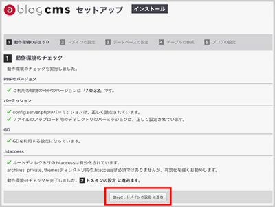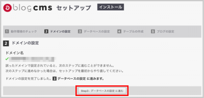 5 「ドメインの設定に進む」ボタンをクリックします。