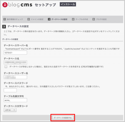 | データベース名 | あらかじめ入力された状態になっています。 |