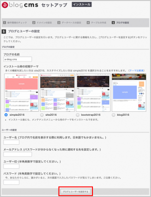 11 各項目を入力し、「ブログとユーザーを設定する」をクリックします。