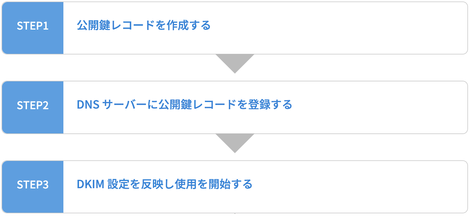2 登録が完了しましたら、次項「STEP3:DKIM 設定を反映し使用を開始する」の手順にて、DKIM 設定を反映してください