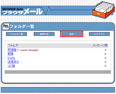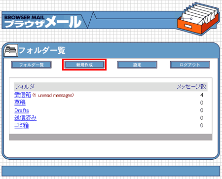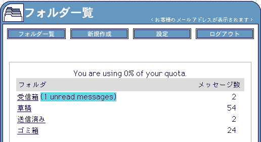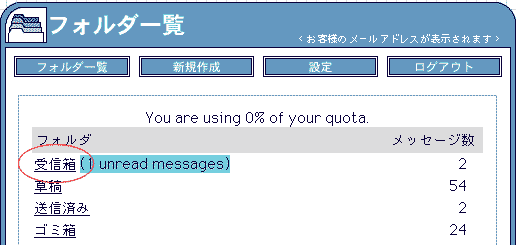 新着(未読)メールがある場合は、【受信箱】の横に「(未読メールの数)unread messages」と表示されます。