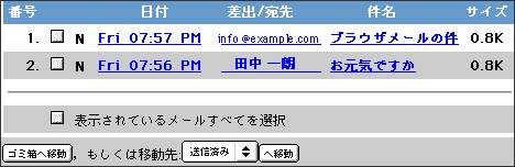 送信済み……送信済みメールが一覧表示されます。