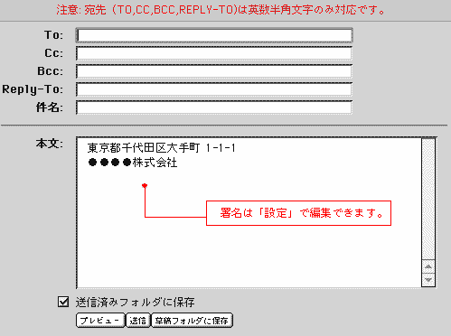 - 「件名」と「本文」以外は日本語に対応していません。