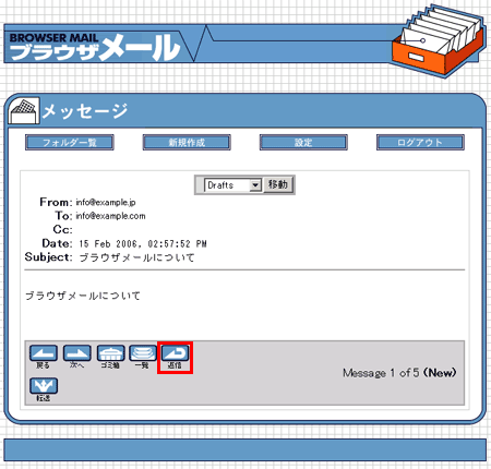 ウェブメール(シンプルタイプ)の操作は、画面上にあるメニューボタンで操作してください。 ブラウザのボタンでは、動作しませんのでご注意ください。