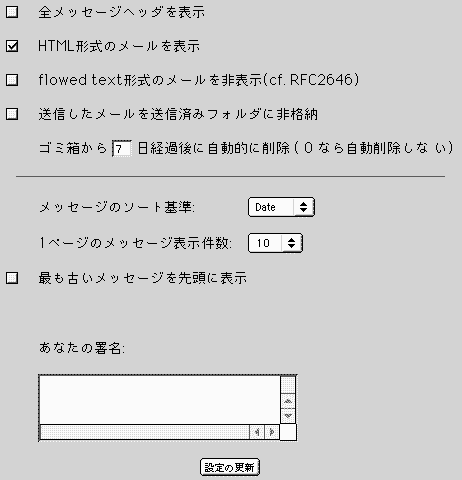 - flowed text 形式のメールの表示(cf. RFC2646) or 非表示
