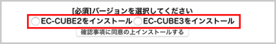 2 インストール先ディレクトリを指定し、バージョンの選択で「EC-CUBE2 をインストール」にチェック、「確認事項に同意の上インストールする」ボタンをクリックします。