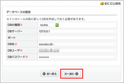 | データベース名 | ユーザー名_eccube |