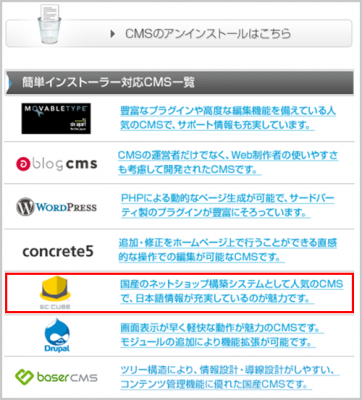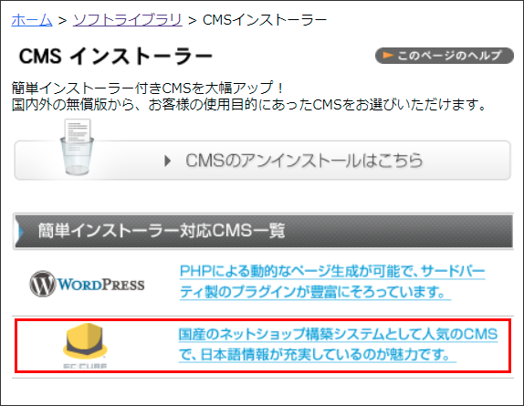 1 コントロールパネルの「CMS インストーラー」から EC-CUBE を選択します。