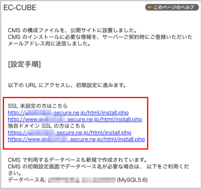 | URL (セキュア) | http://ドメイン名/インストールディレクトリ/html/ |