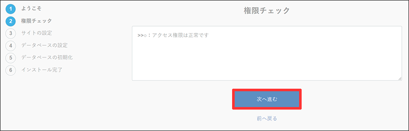 5 「次へ進む」ボタンをクリックします。