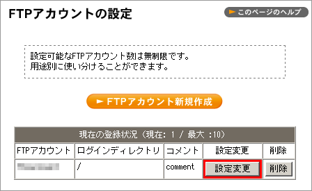 2 変更したい FTP アカウントの【設定変更】ボタンをクリックします。