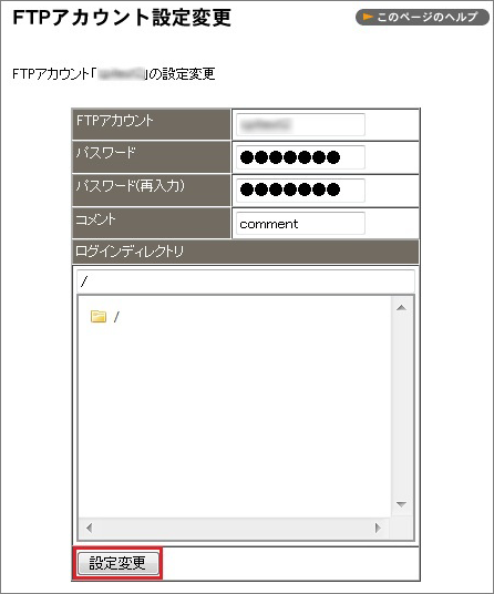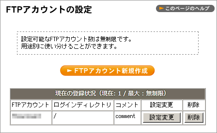 FTP アカウントの設定変更