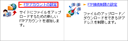 2 ホーム > FTP/ファイル管理 > FTP アカウントの設定 をクリックします。