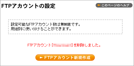 4 削除されると【FTP アカウント[*****]を削除しました】と表示されます。