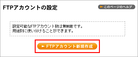 2 【FTP アカウント新規作成】ボタンをクリックします。