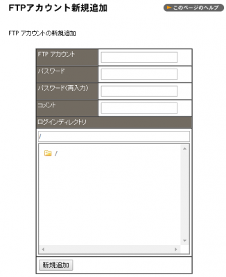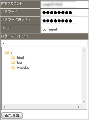 3 FTP アカウント名、パスワードを入力し【新規追加】ボタンをクリックします。