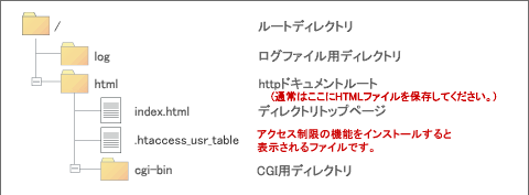 “/html/” をログインディレクトリに選んだ場合、”/html/” 以下のディレクトリにアクセスすることはできますが、それより上の階層にアクセスできません。
