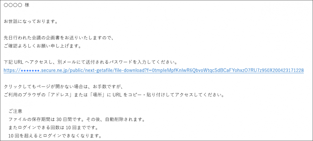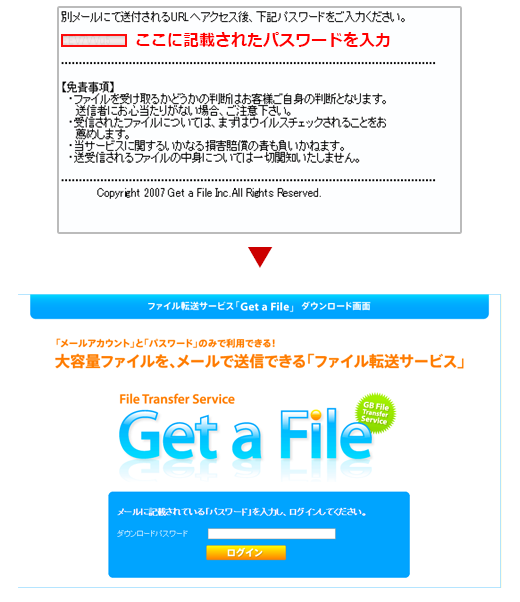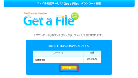 ・「Get a File」で送信したファイルをダウンロードするための URL に 10 回ログインすると、それ以降はログインすることができなくなります。その場合は、再度ファイルを送信していただきますようお願いいたします。