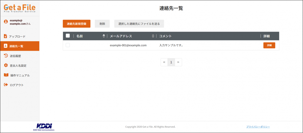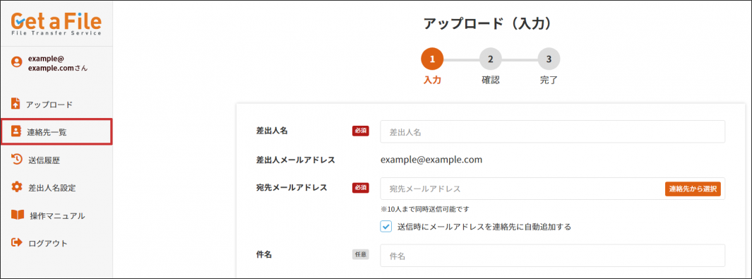 1 Get a File にログイン後、左部メニューの【連絡先一覧】をクリックします。
