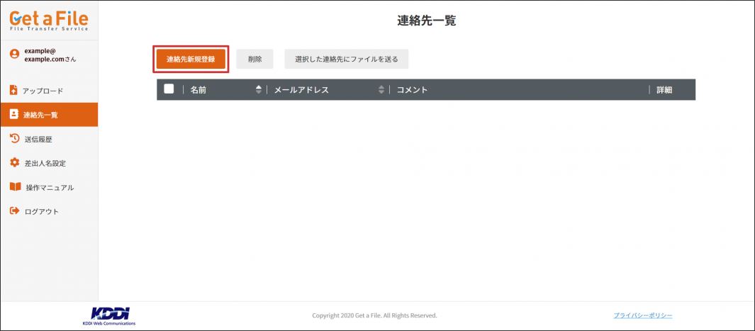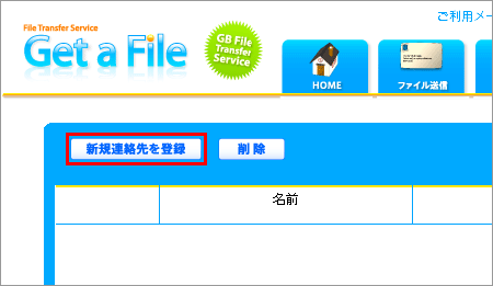 2 Get a File にログイン後、左部メニューの【連絡先一覧】をクリックします。