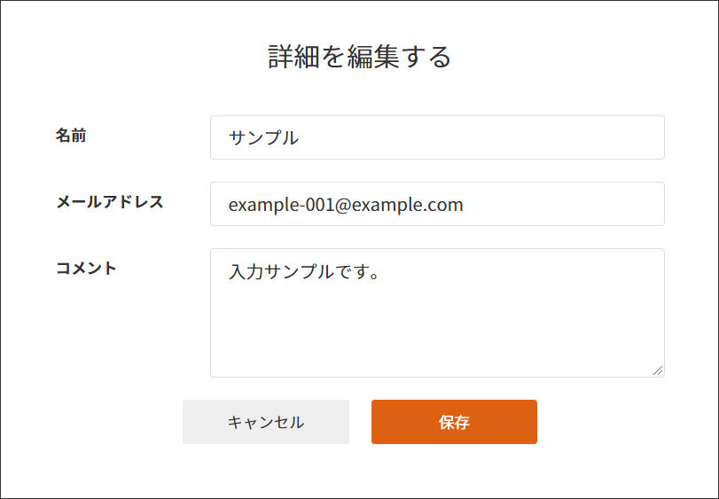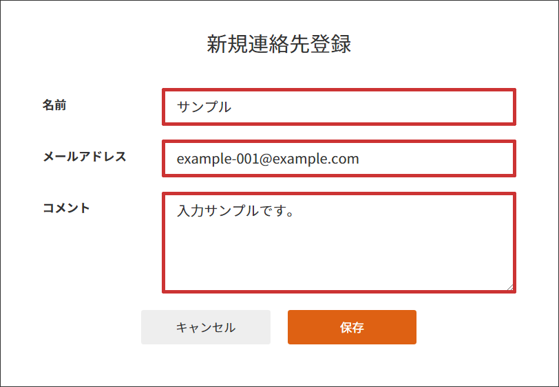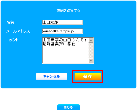 3 「名前」「メールアドレス」「コメント」を入力して【保存】ボタンをクリックします。