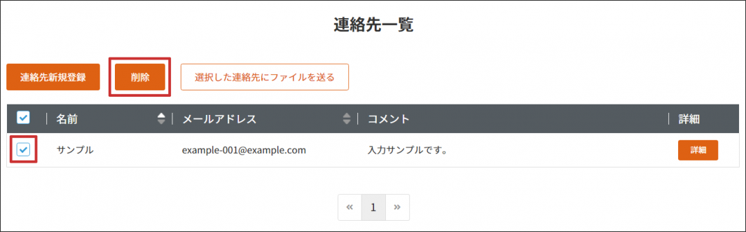 2 登録データの左端のチェックボックスにチェックを入れ、【削除】ボタンをクリックします。