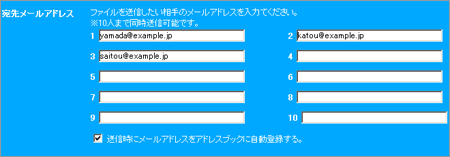 - 10 メールアドレスまで同時に送信可能です。