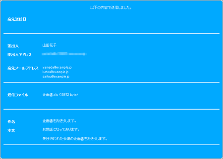 1 送信が完了しますと「宛先メールアドレス」に指定したメールアドレス宛に 2 通のメールが送信されます。