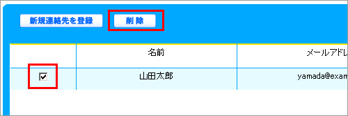 2 登録データの左端のチェックボックスにチェックを入れて、【削除】ボタンをクリックします。
