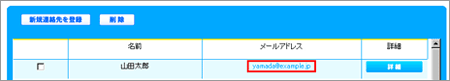 1 アドレス帳に登録済みのデータのメールアドレスをクリックします。