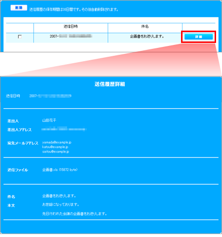 3 送信履歴詳細の画面が表示されます。